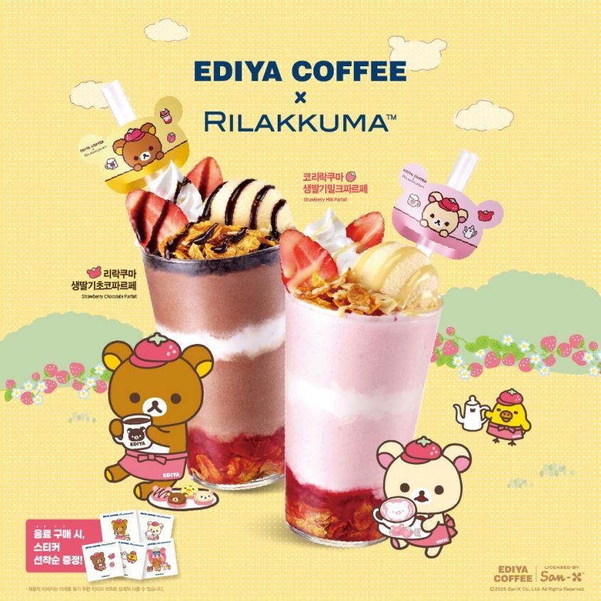 시즌 음료는 '리락쿠마 생딸기 초코 파르페'와 '코리락쿠마 생딸기 밀크 파르페' 2종이다. 리락쿠마 생딸기 초코 파르페는 진한 초코 스무디에 신선한 생딸기와 딸기 베이스를 더하고, 아몬드 시리얼과 쿠키 분태로 바삭한 식감을 살린 디저트형 메뉴다. 코리락쿠마 생딸기 밀크 파르페는 달콤한 딸기 스무디에 생딸기와 딸기 베이스를 더한 뒤, 아몬드 시리얼과 바닐라 아이스크림을 함께 담아 부드러움을 강조했다.
