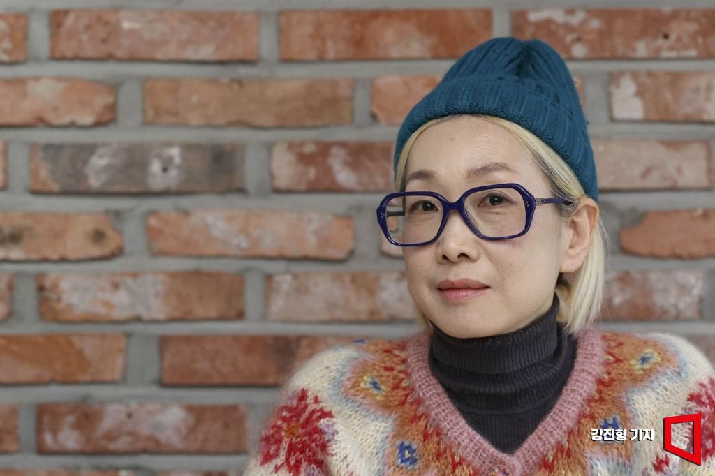 만욱(박경화, MANWOOK) 회화미술작가가 5일 서울 서초구 한 카페에서 인터뷰에 앞서 포즈를 취하고 있다. 강진형 기자