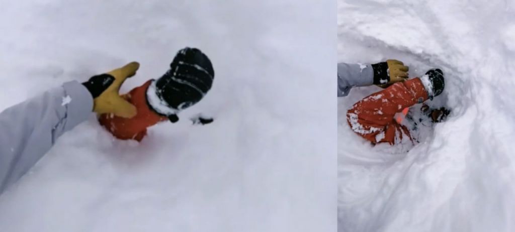 과거 눈사태 구조 훈련을 받은 경험이 있던 남성은 즉시 현장으로 달려가 매몰된 남성의 얼굴과 입 주변의 눈을 제거하고 의식 상태를 확인했다. 인스타그램 matteozilla