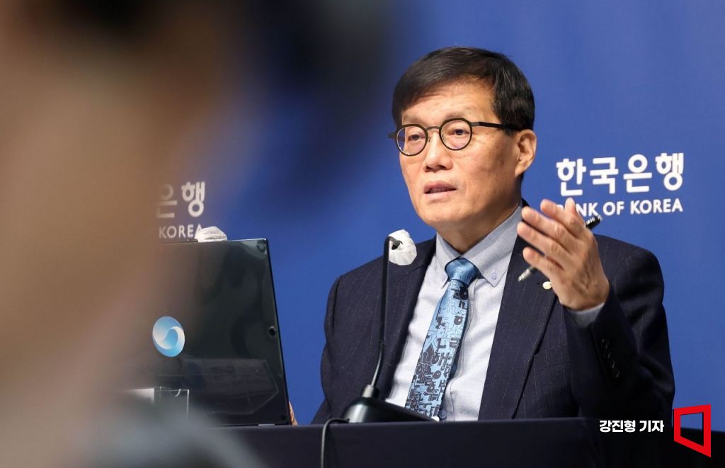 이창용 한국은행 총재가 15일 오전 서울 중구 한은에서 열린 통화정책방향 기자간담회에서 취재진 질문에 답하고 있다.