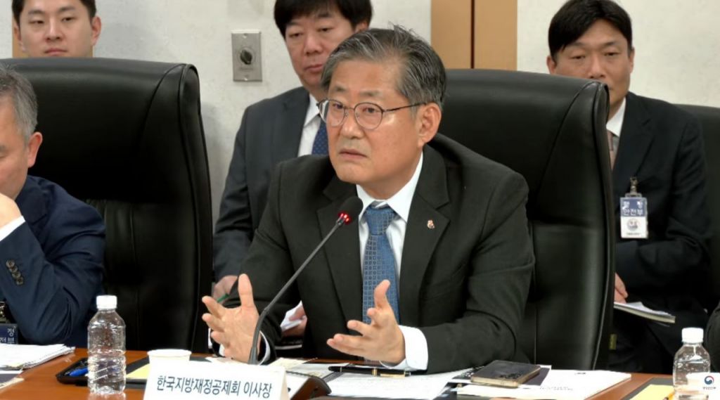 한국지방재정공제회(이사장 정선용)이 지난 14일 정부서울청사에서 열린 '2026년 행정안전부 산하기관 업무보고'에서 지난해 주요 성과와 올해 중점 추진과제를 발표하고 있다. 한국지방재정공제회 제공
