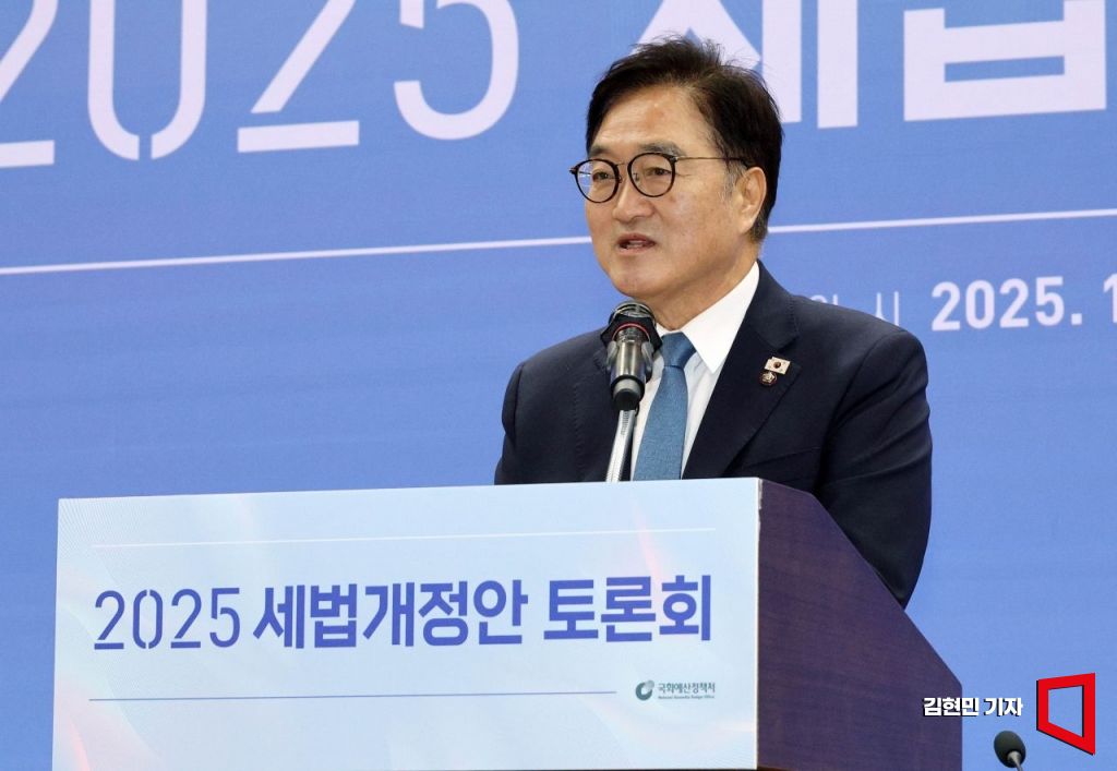 우원식 국회의장이 10일 국회에서 열린 2025 세법개정안 토론회에 참석해 격려사를 하고 있다. 2025.11.10 김현민 기자