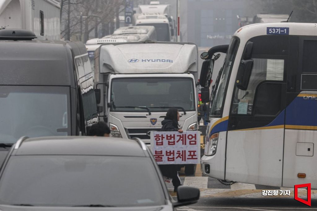 [포토] 경찰 차벽으로 가로막힌 서울중앙지법 출입구