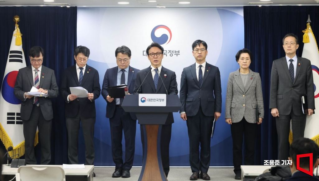 김민석 국무총리가 16일 서울 종로구 정부서울청사에서 행정통합 인센티브와 관련해 브리핑을 하고 있다. 이날 발표에는 이형일 재경부 차관, 최은옥 교육부 차관, 김민재 행안부 차관, 문신학 산업부 차관, 김이탁 국토부 1차관, 임기근 기획처 차관 등이 배석했다.