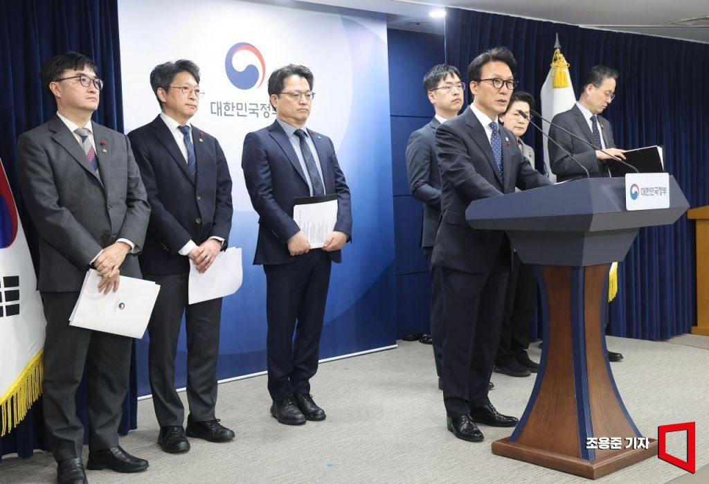 김민석 국무총리가 16일 서울 종로구 정부서울청사에서 행정통합 인센티브와 관련해 브리핑을 하고 있다. 이날 발표에는 이형일 재경부 차관, 최은옥 교육부 차관, 김민재 행안부 차관, 문신학 산업부 차관, 김이탁 국토부 1차관, 임기근 기획처 차관 등이 배석했다.