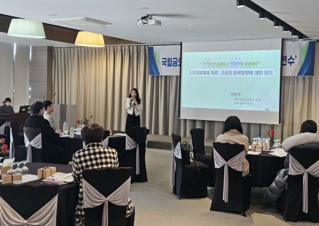이날 교사 연수에서는 ▲고교학점제에 따른 대입전형의 변화와 전망(석상일 경상북도교육청연구원 대입지원관) ▲고교학점제에 따른 고교의 준비 방향에 대한 제언(장현주 경안여고 교사) ▲Good In, Better Out_차이를 만드는 국립금오공대의 혁신적 교육체계(임상훈 국립금오공대 미래교육혁신본부장)의 순으로 발표가 진행됐다.
