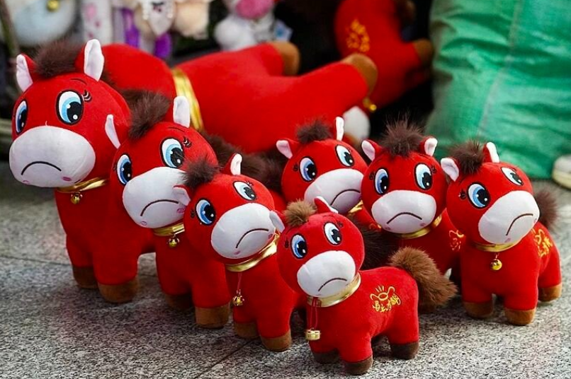보도에 따르면 지난 1월 울고 있는 듯한 표정의 붉은 말 인형 사진이 중국 온라인상에 공유되면서 화제가 됐다. 이 인형은 세계 최대 소상품 도매시장으로 알려진 중국 저장성 이우 국제무역성에서 제작된 것이다. 높이는 20cm, 가격은 25위안(약 5300원)으로 붉은색 몸체에 '재물이 빨리 들어온다'는 의미의 금색 문구가 수놓아져 있다.