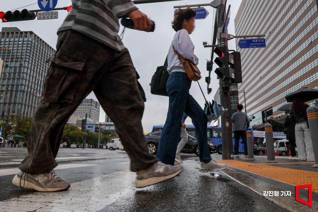 서울 종로구 세종로 네거리에서 직장인들이 출근하고 있다.