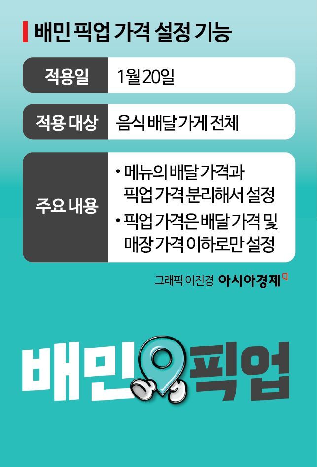 19일 우아한형제들에 따르면 일부 가게에서 시범 운영 중인 픽업 가격 이원화 기능이 20일부터 음식배달 전체 가게로 확대 운영된다. 이는 입점 업체가 메뉴별로 배달 가격과 픽업 가격을 분리해서 설정할 수 있도록 하는 것이다. 픽업 가격은 배달이나 매장 판매 가격 이하로만 정할 수 있다. 고객 입장에선 같은 메뉴를 픽업으로 주문하면 더 저렴하게 먹을 수 있게 된다는 얘기다. 배민은 이를 통해 입점 업체가 배달과는 가격부터 차별화되는 픽업 메뉴만의 마케팅을 적극적으로 펼칠 수 있을 것으로 내다봤다.