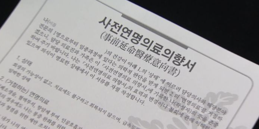 사전연명의료의향서는 자신의 임종에 대비해 연명의료와 호스피스에 대한 의향을 미리 작성해두는 문서다. 19세 이상 성인은 누구나 전국 지정 등록기관을 찾아 설명을 들은 후 서명할 수 있다.