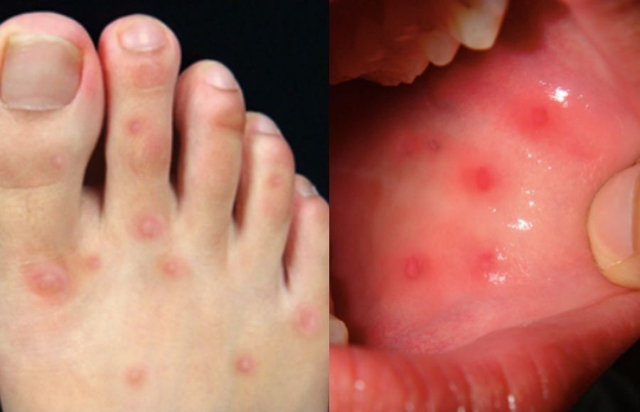 앤테로바이러스 감염에 의한 수족구 질환 자료사진(발, 입안의 수포성 발진 사례). 서울대병원
