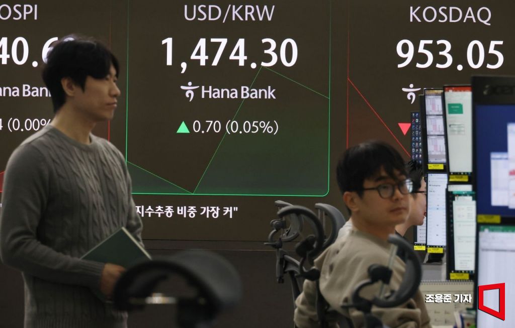 코스피가 꿈의 지수로 불리는 '오천피'(코스피 5,000) 돌파를 위한 상승세를 이어가고 있는 가운데 19일 서울 중구 하나은행 본점 딜링룸에서 직원이 증시와 환율 등을 모니터하고 있다. 이날 원/달러 환율은 0.4원 오른 1474.0 개장했다.