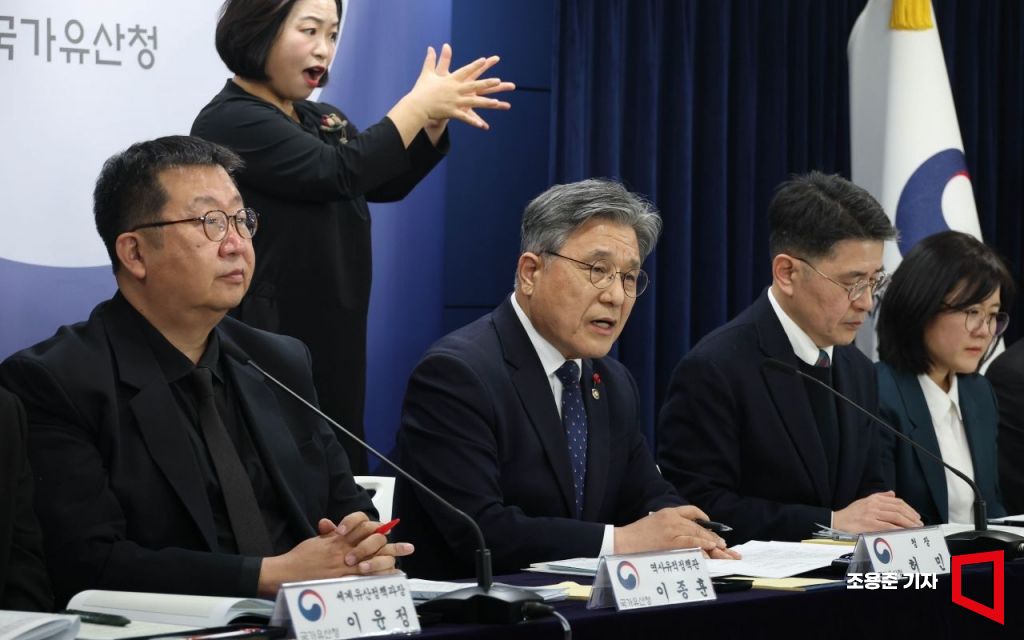허민 국가유산청장이 19일 서울 종로구 정부서울청사에서 열린 세계유산영향평가 언론 설명회에서 모두 발언하고 있다.