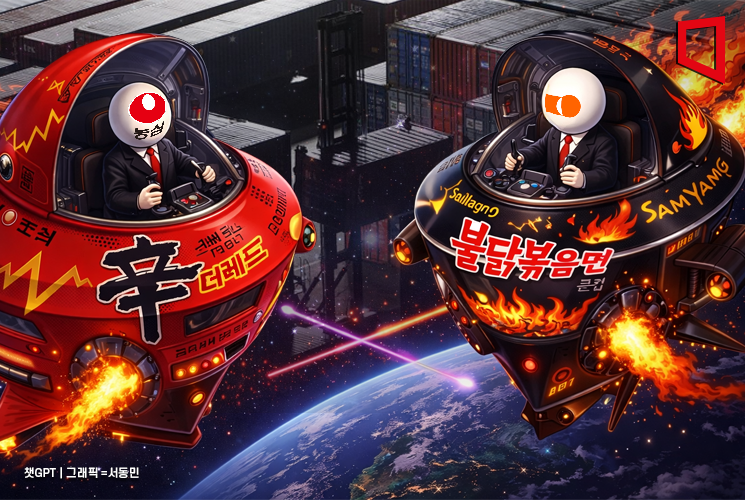 라면 시장의 경쟁 무대가 바뀌었다. 농심이 '신라면'을 필두로 한 브랜드 파워와 유통 지배력을 지키며 왕좌를 차지한 가운데 '불닭볶음면'을 앞세운 삼양식품이 실적을 가파르게 늘리면서다. 라면 전쟁의 무대가 글로벌로 확장하면서 양사의 경쟁은 '누가 더 많이 파느냐'가 아니라 글로벌 수요를 얼마나 빠르고 안정적으로 공급할 수 있느냐로 이동하고 있다.