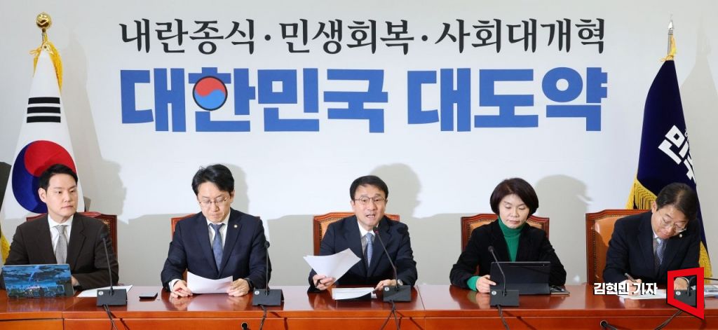 한병도 더불어민주당 원내대표가 20일 국회에서 열린 원내대책회의에서 발언하고 있다.