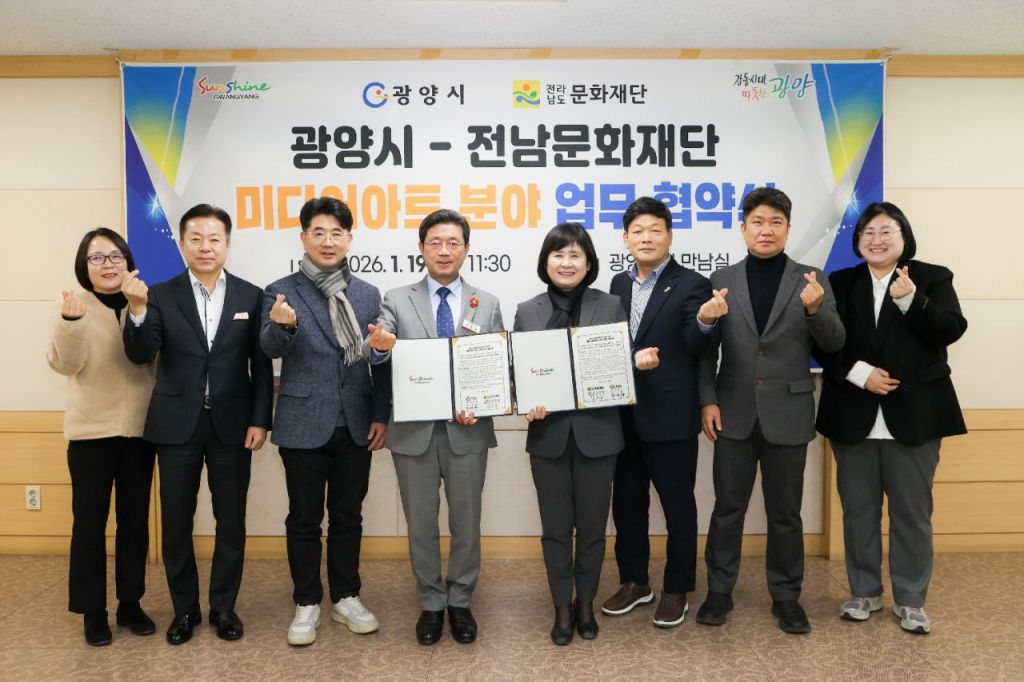 전남 광양시는 지난 19일 광양시청 만남실에서 전라남도문화재단과 미디어아트 기반 문화예술 협력을 위한 업무협약을 체결했다고 밝혔다.