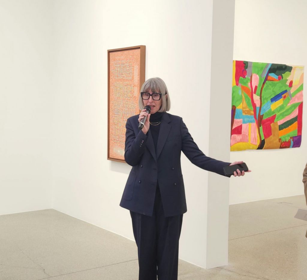 수잔 메이 화이트 큐브 글로벌 아트 디렉터가 20일 서울 강남구 화이트큐브에서 열린 에텔 아드난·이성자 작가 2인전 '태양을 만나다' 기자간담회에서 인사말을 하고 있다. 서믿음 기자