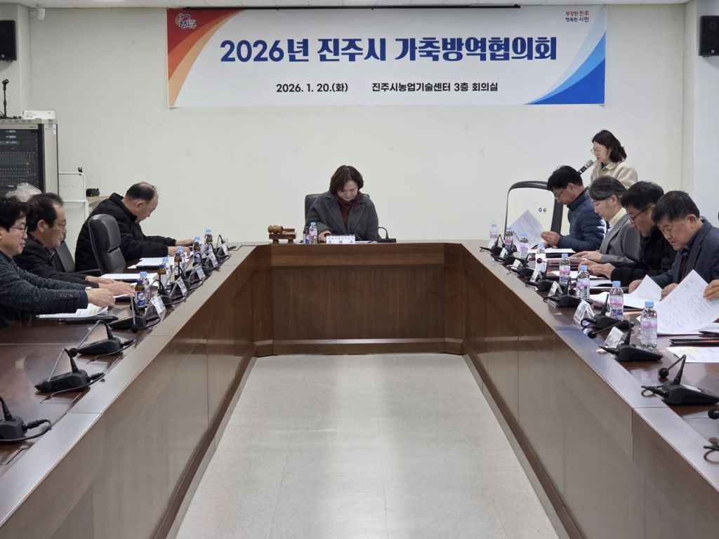 경남 진주시는 농업기술센터 회의실에서 방역 행정의 투명성을 확보하고 실효성을 높이기 위해 '2026년 가축방역 협의회'를 개최하고, '가축전염병 제로(Zero)'를 슬로건으로 내건 방역 행정에 박차를 가하고 있다고 21일 밝혔다.