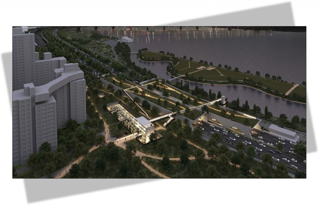 주거지와 한강을 연결하는 서울시내 첫 덮개공원 조성 사업이 속도를 낸다. 한강변 시설물 설치 규제가 지난해 제거된 데 이어 하천점용 허가를 위한 추가 설계 작업이 시작됐다. 덮개공원은 서울시가 추진하는 한강변 재구조화 사업의 핵심이다.