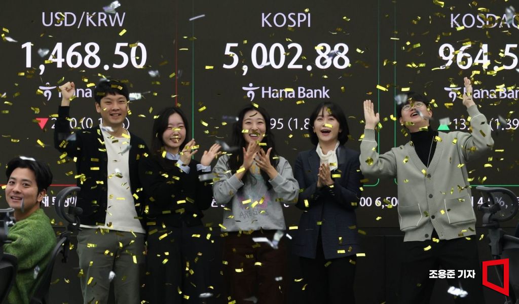 [포토] 사상 첫 5000 돌파한 코스피