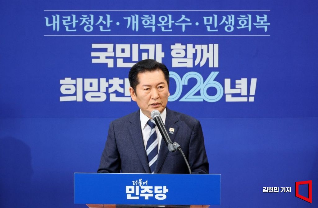 정청래 더불어민주당 대표가 22일 국회에서 긴급 기자회견을 열고 조국혁신당과의 합당을 제안하고 있다. 2026.1.22 김현민 기자