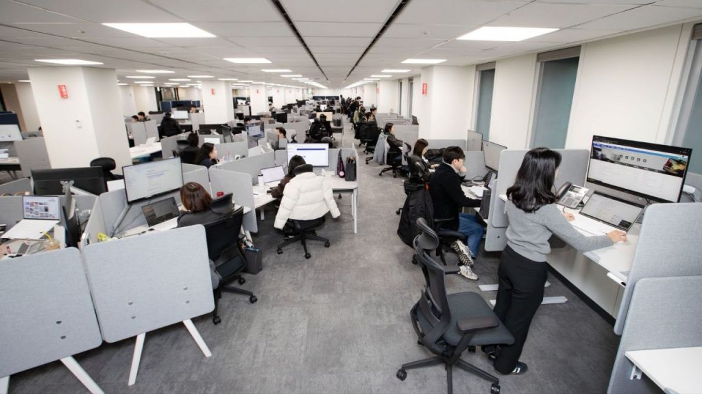 특히 임직원의 근무 만족도를 높이기 위해 시각적인 개방감을 확보한 120도형 책상은 물론, 프라이버시를 중시하는 임직원들을 위해 파티션 형태의 개인 근무석을 강화했다.