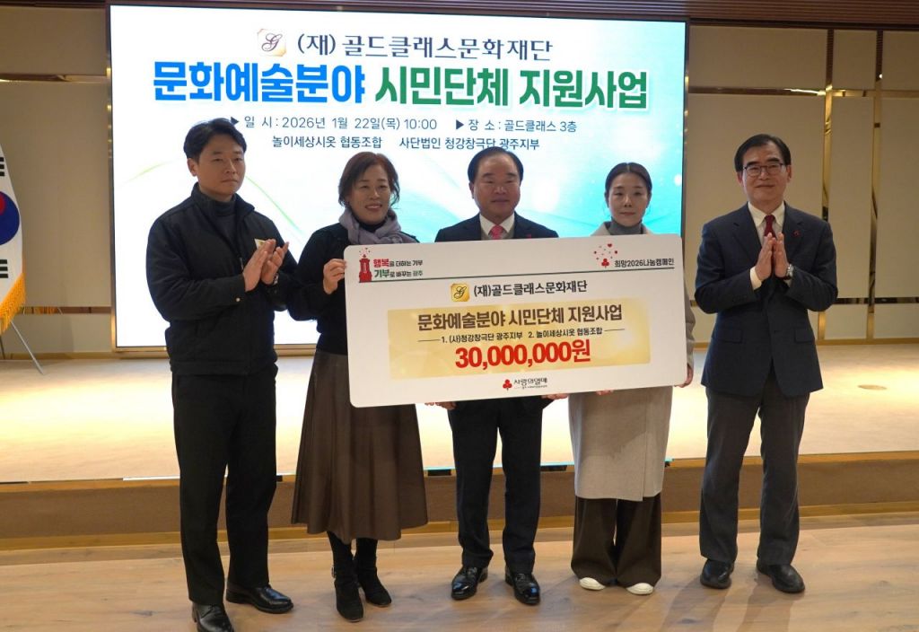 광주사회복지공동모금회(이하 광주사랑의열매)는 (재)골드클래스문화재단이 지역 문화예술 지원을 위한 후원금 3,000만원을 기탁했다고 22일 밝혔다.