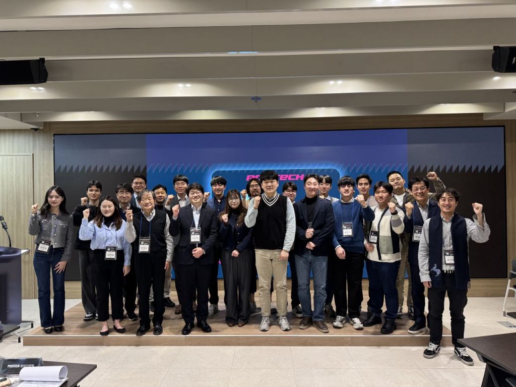 'POSTECH ICT·소재·부품·장비 딥테크 스타트업 부스터업 IR 데모데이' 행사 참석자들이 기념촬영을 하고 있다. 포스텍 창업지원팀