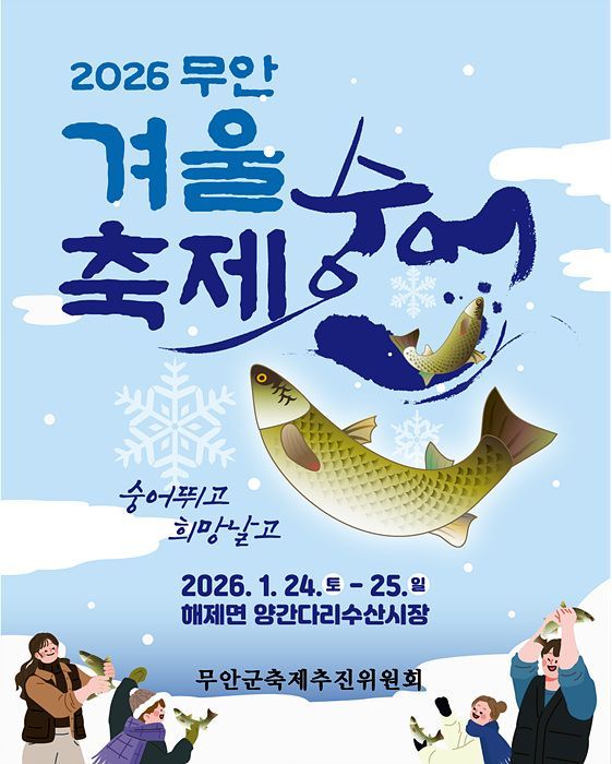 전남 무안군이 겨울철 별미 숭어를 주제로 한 '2026 무안겨울숭어축제'를 오는 24일부터 25일까지 이틀간 해제면 주민 다목적센터와 양간다리수산시장 일원에서 개최한다.
