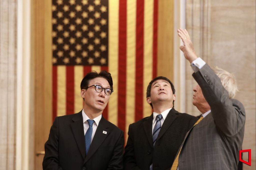 김민석 국무총리가 22일(현지시간) 미국 의사당을 방문, 하원 주요 인사들과 대화를 나누고 있다. 2026.1.23 [총리실제공]