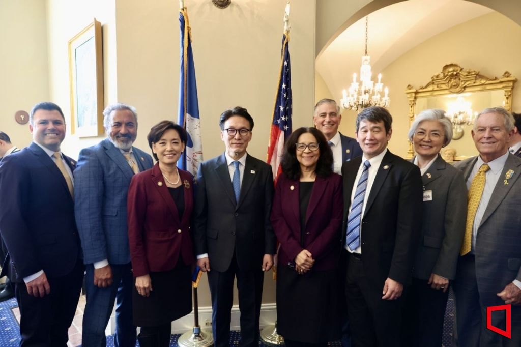 미국을 방문중인 김민석 국무총리가 22일(현지시간) 미 하원 주요인사의 초청으로 미 의사당을 방문, 오찬 간담회 참석해 대화를 나누고 있다. (두번째 사진 기준 왼쪽부터 MacKenzie, Ami Bera, Young Kim, 총리, Marliyn Strickland, Michael Baumgartner, Dave Min, 강경화 대사, Joe Wilson 의원) 2026.1.23 [총리실제공]