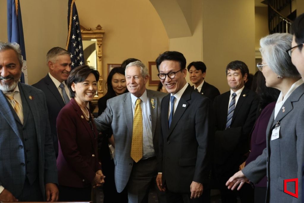 김민석 국무총리가 22일(현지시간) 미국 의사당을 방문, 하원 주요 인사들과 대화를 나누고 있다. 2026.1.23 [총리실제공]
