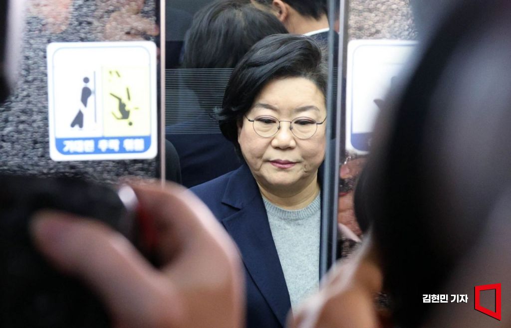 이혜훈 기획예산처 장관 후보자가 23일 국회에서 열린 인사청문회에 참석하기 위해 이동하고 있다.