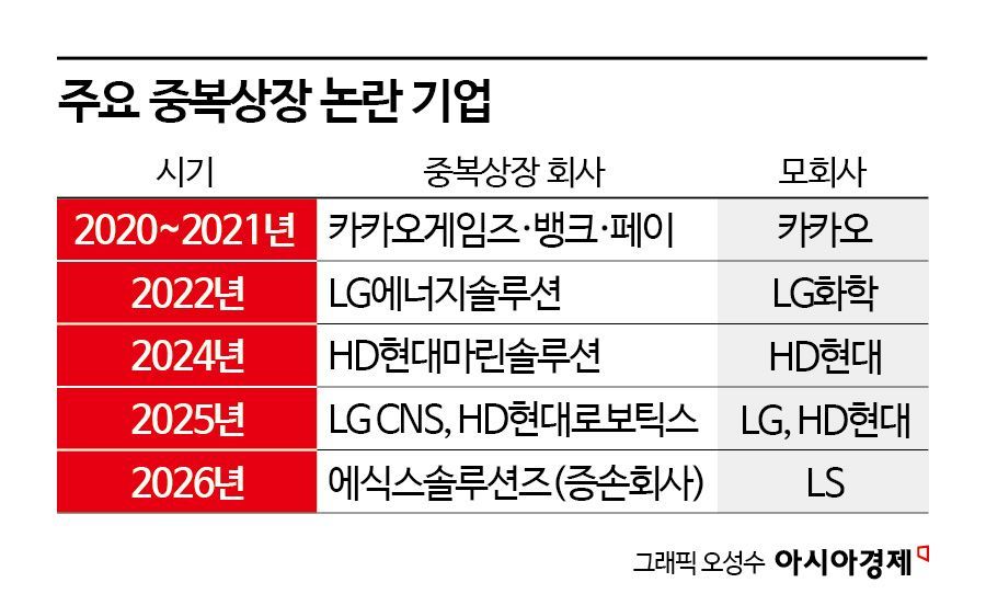 국내 증시에서 중복상장 논란이 본격적으로 수면 위로 떠 오른 계기는 2022년 LG에너지솔루션 상장 건이다. 당시 LG화학이 핵심 성장동력인 배터리 사업을 물적분할해 상장하자, 기존 주주들이 큰 손실을 보며 '지배주주만 이익을 본다'는 비판이 커졌다. 업계 관계자는 "LG화학은 배터리를 떼어내면 성장 서사가 희미해지는 상황이었다. 물적분할과 중복상장의 잔인함을 처음으로 숫자와 계좌잔고로 체감한 사건일 것"이라고 평가했다. 투자자들에게 있어 중복상장이 모회사와 자회사의 가치가 분산되며 주주 이익이 훼손될 수 있는 구조적 문제로 인식되기 시작한 것이다.