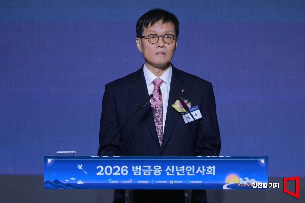 이창용 한국은행 총재가 지난 5일 오후 서울 중구 롯데호텔에서 열린 '2026 범금융 신년인사회'에서 신년사를 하고 있다.
