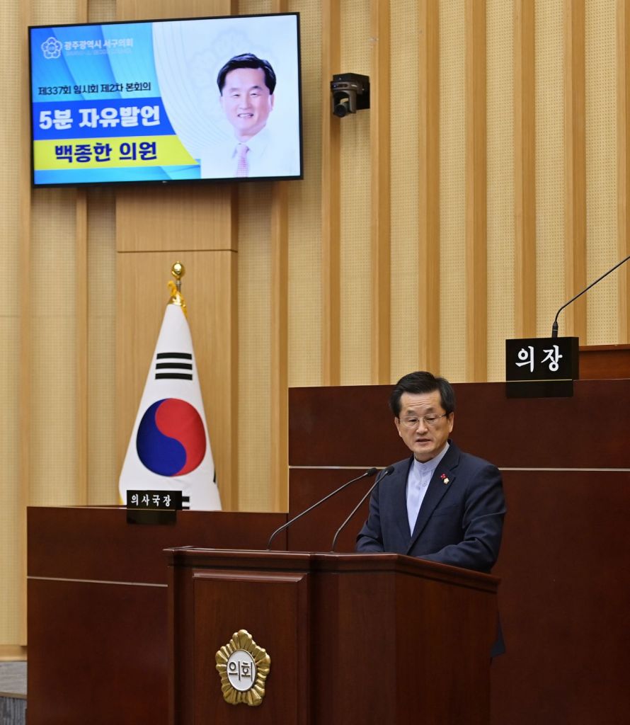 광주 서구의회 백종한 의원(화정3동, 화정4동, 풍암동)이 23일 제337회 임시회 제2차 본회의에서 5분 자유발언을 통해 재난·안전·민생·복지 현장에서 근무해 온 공직자들의 노고를 치하했다.