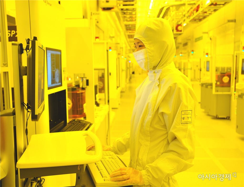 ▲삼성전자 시스템 반도체 생산라인에서 삼성전자 시스템LSI 사업부 소속 연구원이 생산라인을 점검하고 있다. (제공=삼성전자)