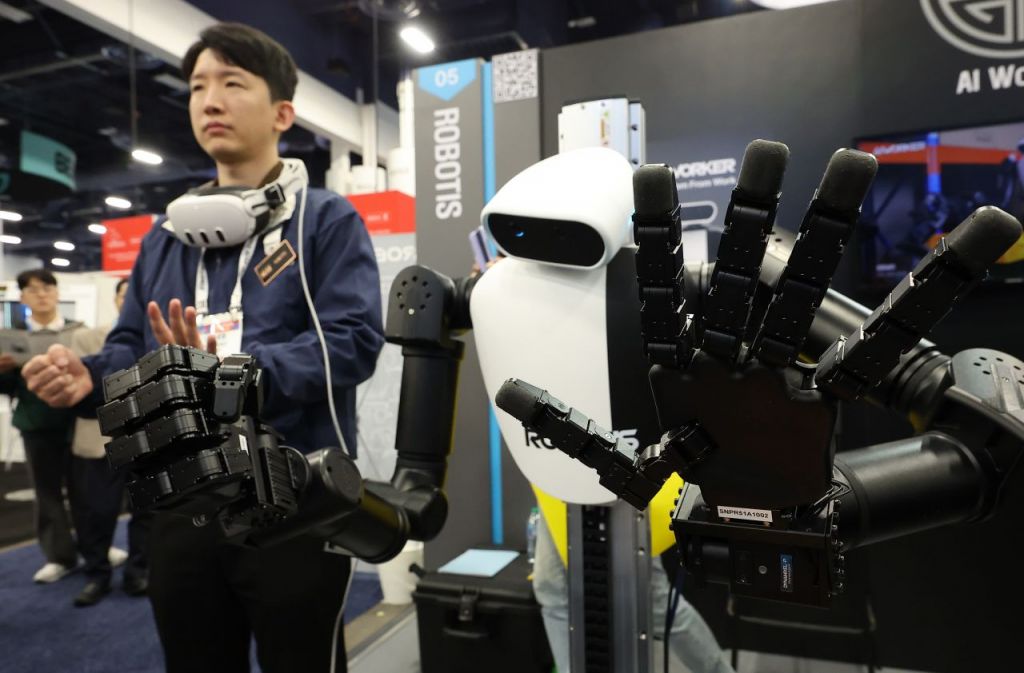 CES 개막일인 6일(현지시간) 미국 네바다주 라스베이거스 컨벤션센터(LVCC)에 한국 로봇 업체 로보티즈 관계자가 손동작을 카메라로 인식해 따라하는 로봇을 시연하고 있다. 기사 내용과 무관. 연합뉴스.