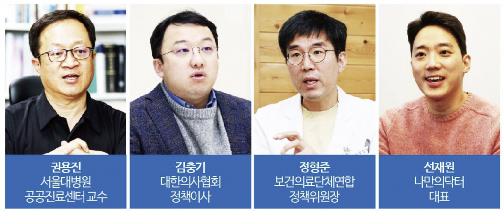 비대면진료의 본격화는 단순한 의료 서비스의 변화를 넘어 의료의 개념과 가치 자체를 바꾸고 국민 건강에 직접적인 영향을 미칠 중대한 분기점이 될 전망이다. 하지만 비대면진료가 단순히 '환자 편의'를 넘어 의료 시스템의 한 축으로 자리 잡기 위해서는 아직 풀어야 과제가 많다. 아시아경제는 권용진 서울대병원 공공진료센터 교수, 김충기 대한의사협회 정책이사, 정형준 보건의료단체연합 정책위원장, 선재원 나만의닥터 대표를 만나 비대면진료가 제도권 내에 안착하기 위해 반드시 정리해야 할 핵심 쟁점들에 대한 의견을 들었다.