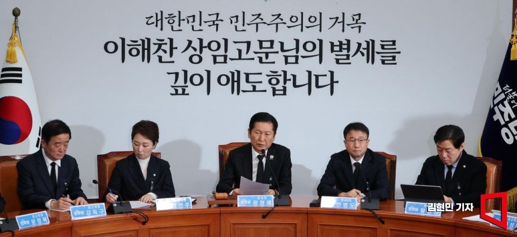 정 대표는 이날 최고위원회의 모두발언에서 "대한민국 민주화의 상징, 더불어민주당의 큰 별이 졌다"며 "민주주의의 거목 이해찬 전 국무총리의 영면을 기원한다"고 추모했다.