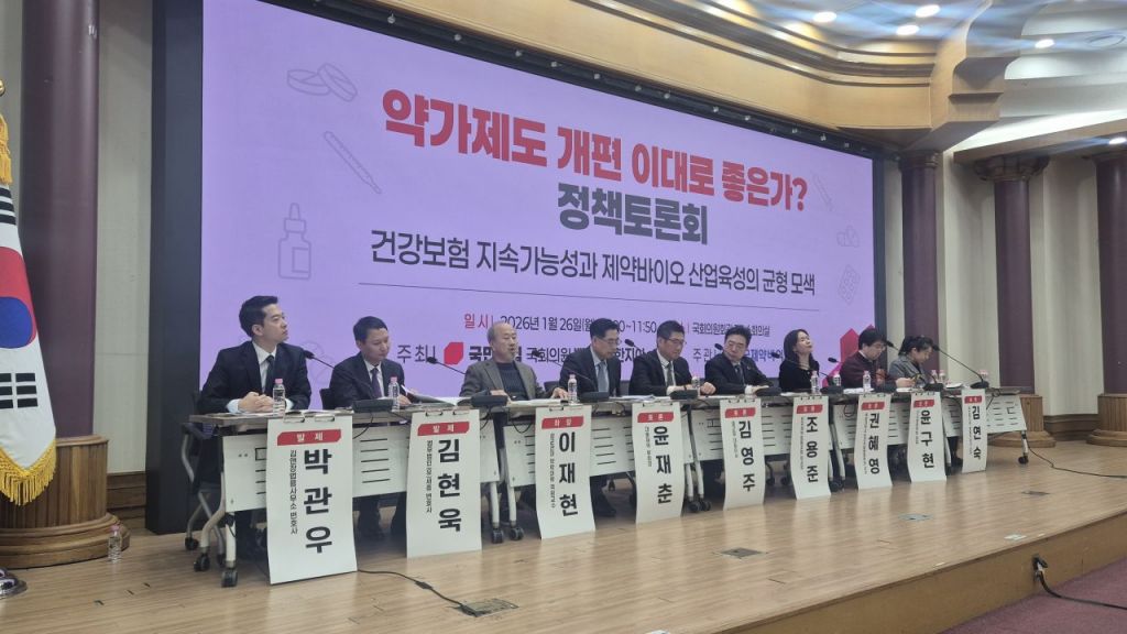 26일 서울 여의도 국회의원회관에서 열린 '약가제도 개편 이대로 좋은가' 정책 토론회에서 참석자들이 발언하고 있다. 박정연 기자