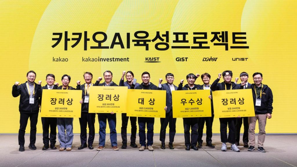 카카오는 지난 22일 경기도 용인시 카카오 AI캠퍼스에서 '4대 과학기술원 X 카카오 AI 육성 프로젝트' 결선 및 시상식을 개최했다고 26일 밝혔다. 이번 프로젝트는 지난해 9월 카카오그룹이 발표한 500억원 규모의 지역 AI 생태계 육성 계획의 첫 실행 사례다.
