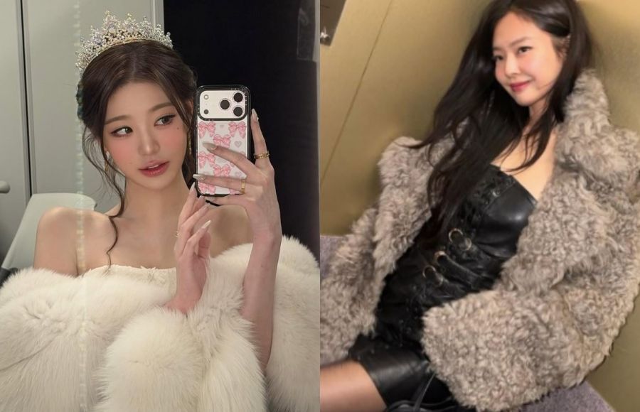 퍼 제품을 착용한 아이브 장원영·블랙핑크 제니. 인스타그램