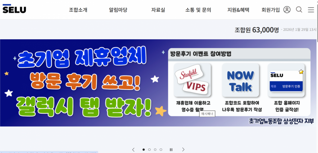 29일 초기업노조 삼성전자 지부(SELU) 홈페이지의 모습.