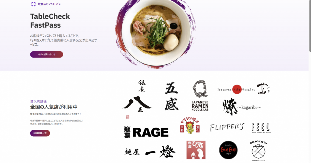 일본에서는 최근 패스트 패스 플랫폼 '테이블 체크'가 유행하고 있습니다. 플랫폼 제휴 업체들은 패스트 패스를 구입해 웨이팅 없이 들어갈 수 있는데요. 가게마다 패스 가격은 천차만별이지만, 호응을 얻고 있습니다.