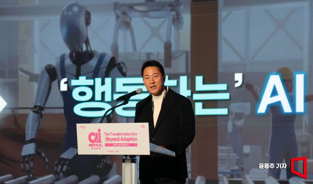 오세훈 서울시장이 30일 서울 강남구 코엑스에서 열린 'AI SEOUL 2026' 콘퍼런스에 참석, 기조발언을 하고 있다. 오 시장은 이 자리에서 '피지컬 AI 선도도시' 비전을 선포하고 서울 전반을 기술 실증의 무대로 개방한다고 밝혔다.
