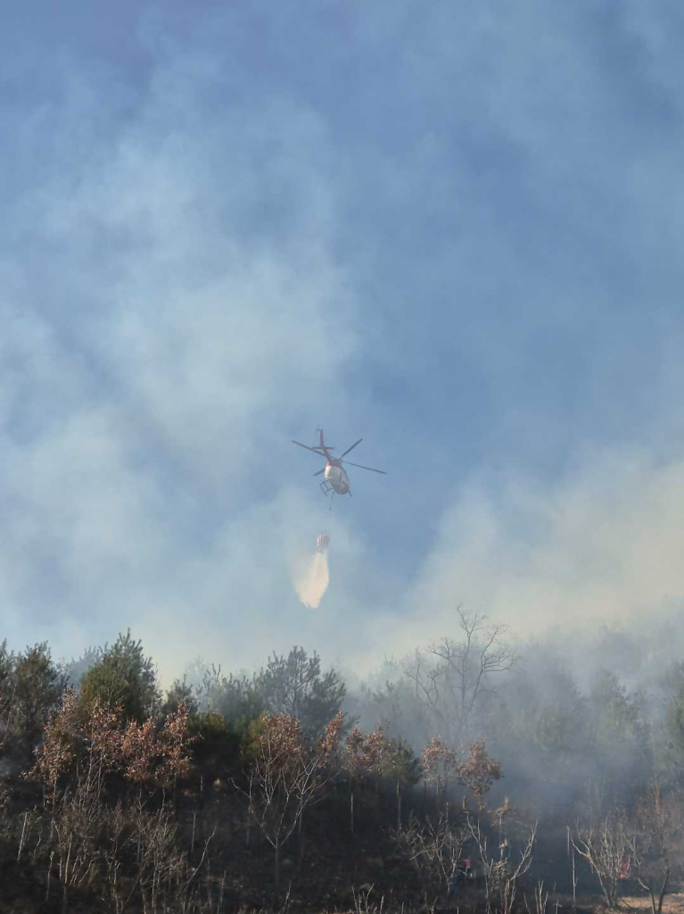 30일 오후 1시 36분쯤 삼척시 도계읍 점리 야산에서 발생한 산불을 산림청 헬기가 진화작업에 나서고 있다.강원특별자치도 산불방지대책본부 제공