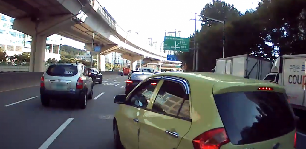 블랙박스에 녹화된 보험사기 범행 장면. 배달기사 일당은 CCTV 사각지대를 이용해 고의사고를 일으킨 것으로 조사됐다. 서울 성동경찰서