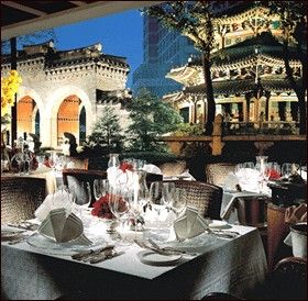 나인스 게이트 레스토랑의 자랑거리는 전면의 통 유리 차창 밖으로 내다보이는 환구단의 전경이다. 고종 황제가 하늘에 제사를 지내기 위해 세운 원구단과 돌 북, 세 개의 문, 이들을 둘러싼 잘 꾸며진 정원을 내다보며 식사를 할 수 있다. 홀 쪽의 가운데 자리는 가장 인기가 높은 자리다.
