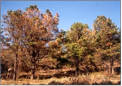 ‘푸사리움 가지마름병’의 저항성 품종육성과 관련, 국내 자생종 소나무와 해송을 포함한 6개 소나무 수종을 대상으로 인공접종 및 저항성 검정을 한 결과 우리 토종 소나무만이 저항성(면역성)을 보였다는 것.